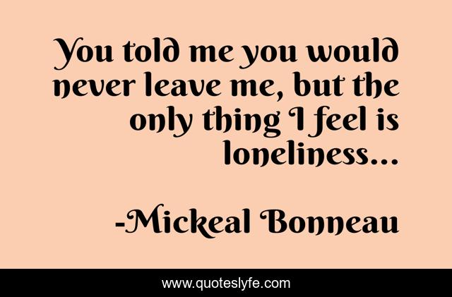 This page presents the quote "You told me you would never leave me, but the only thing I feel is loneliness...". Author of this quote is Mickeal Bonneau. .