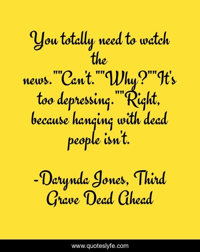 "Darynda Jones, Third Grave Dead Ahead Quotes." Quoteslyfe.com, 2025. Mon. 08 Dec. 2025. <https://www.quoteslyfe.com/quote/You-totally-need-to-watch-the-news-7123>.