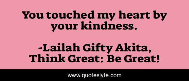 "Lailah Gifty Akita, Think Great: Be Great! Quotes." Quoteslyfe.com, 2025. Fri. 05 Dec. 2025. <https://www.quoteslyfe.com/quote/You-touched-my-heart-by-your-kindness-73811>.