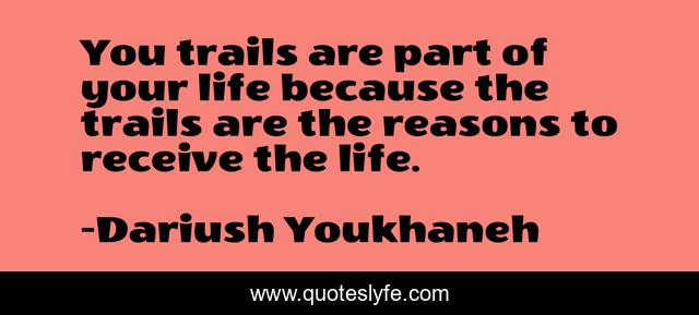 This page presents the quote "You trails are part of your life because the trails are the reasons to receive the life.". Author of this quote is Dariush Youkhaneh. This quote is about trails, life, you-and-life, inspirational, enthusiasm,.