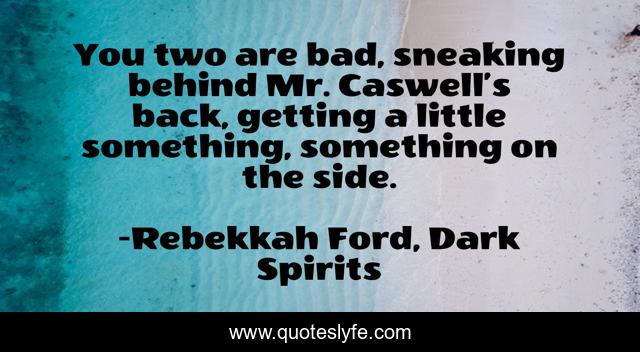 This page presents the quote "You two are bad, sneaking behind Mr. Caswell’s back, getting a little something, something on the side.". Author of this quote is Rebekkah Ford, Dark Spirits. This quote is about young-adult, paranormal-series,.