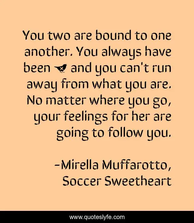 "Mirella Muffarotto, Soccer Sweetheart Quotes." Quoteslyfe.com, 2025. Fri. 05 Dec. 2025. <https://www.quoteslyfe.com/quote/You-two-are-bound-to-one-another-101085>.