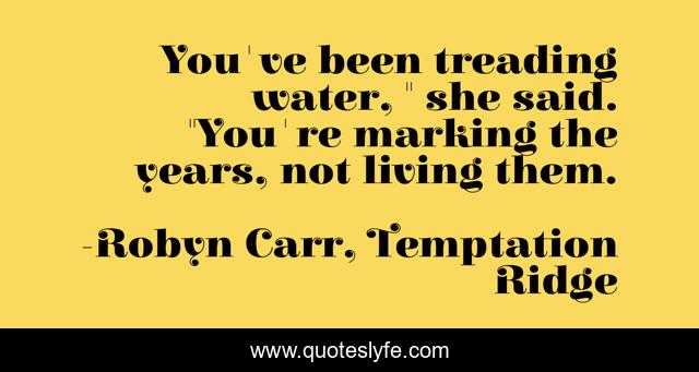 This page presents the quote "You've been treading water, " she said. "You're marking the years, not living them.". Author of this quote is Robyn Carr, Temptation Ridge. .