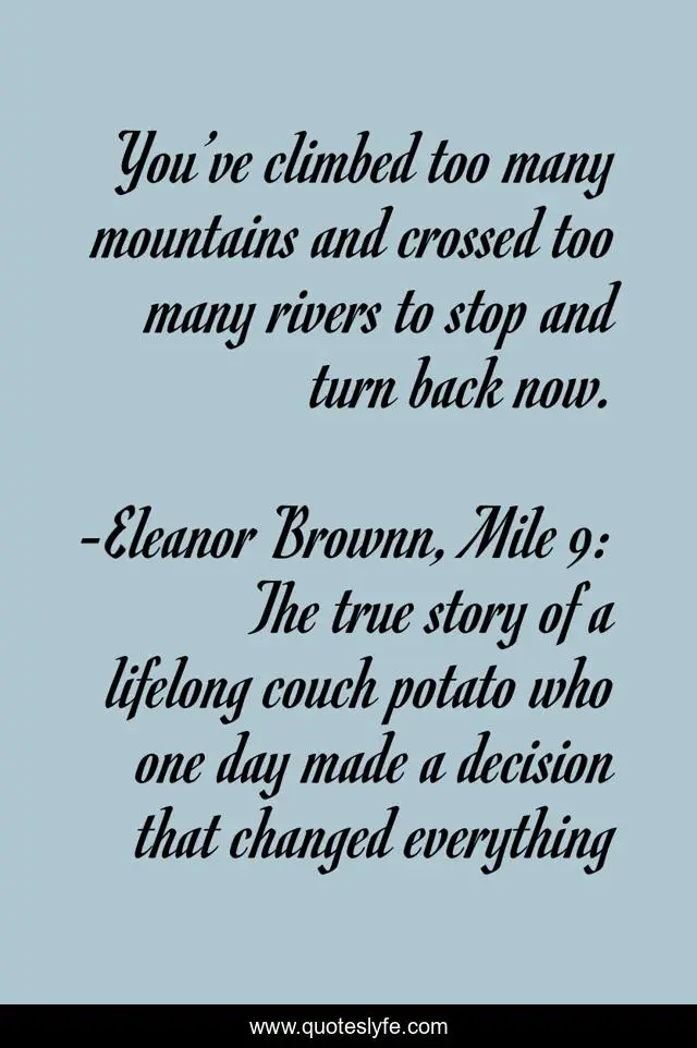 "Eleanor Brownn, Mile 9: The true story of a lifelong couch potato who one day made a decision that changed everything Quotes." Quoteslyfe.com, 2025. Sun. 07 Dec. 2025. <https://www.quoteslyfe.com/quote/You-ve-climbed-too-many-mountains-and-13789>.