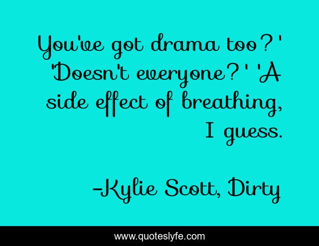 This page presents the quote "You've got drama too?' 'Doesn't everyone?' 'A side effect of breathing, I guess.". Author of this quote is Kylie Scott, Dirty. This quote is about novel, love, romance, passion, humor, affection,.