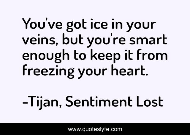 This page presents the quote "You've got ice in your veins, but you're smart enough to keep it from freezing your heart.". Author of this quote is Tijan, Sentiment Lost. This quote is about heart, good-and-evil, ice,.