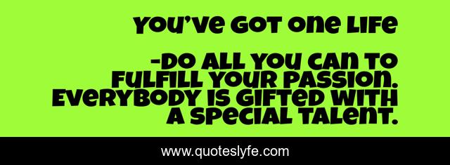 This page presents the quote "You’ve got one life". Author of this quote is do all you can to fulfill your passion. Everybody is gifted with a special talent.. .