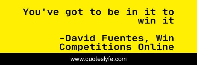This page presents the quote "You've got to be in it to win it". Author of this quote is David Fuentes, Win Competitions Online. This quote is about enthusiasm, motto, inspirational, winning,.