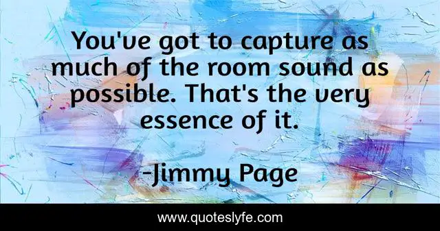This page presents the quote "You've got to capture as much of the room sound as possible. That's the very essence of it.". Author of this quote is Jimmy Page. This quote is about sound-recording, art, music,.