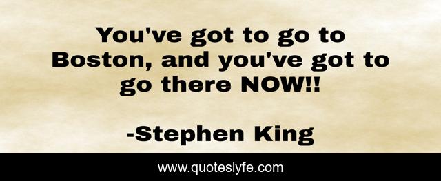This page presents the quote "You've got to go to Boston, and you've got to go there NOW!!". Author of this quote is Stephen King. This quote is about action, procrastination,.