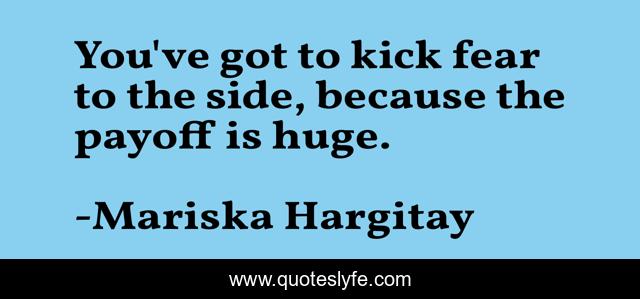 This page presents the quote "You've got to kick fear to the side, because the payoff is huge.". Author of this quote is Mariska Hargitay. This quote is about side, kick,.