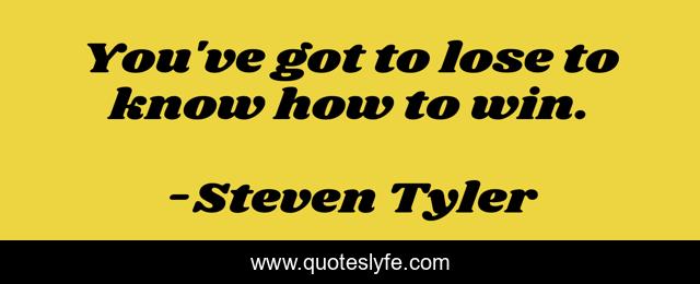 This page presents the quote "You've got to lose to know how to win.". Author of this quote is Steven Tyler. This quote is about losing, win, lose, winning,.