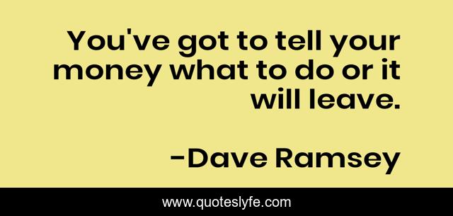 This page presents the quote "You've got to tell your money what to do or it will leave.". Author of this quote is Dave Ramsey. .