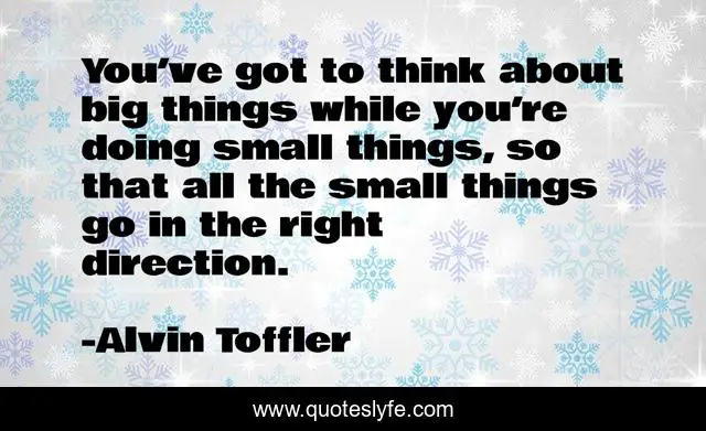 "Alvin Toffler Quotes." Quoteslyfe.com, 2025. Fri. 05 Dec. 2025. <https://www.quoteslyfe.com/quote/You-ve-got-to-think-about-big-235390>.