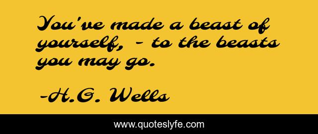This page presents the quote "You've made a beast of yourself, - to the beasts you may go.". Author of this quote is H.G. Wells. .