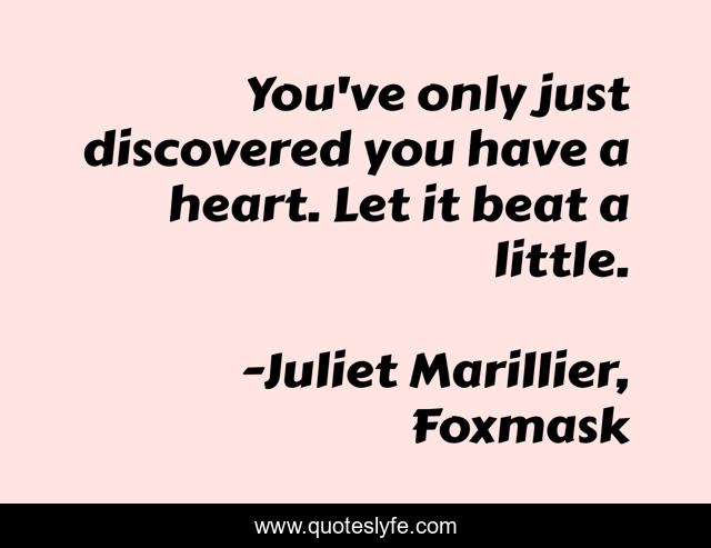 This page presents the quote "You've only just discovered you have a heart. Let it beat a little.". Author of this quote is Juliet Marillier, Foxmask. This quote is about heart, redemption, change,.