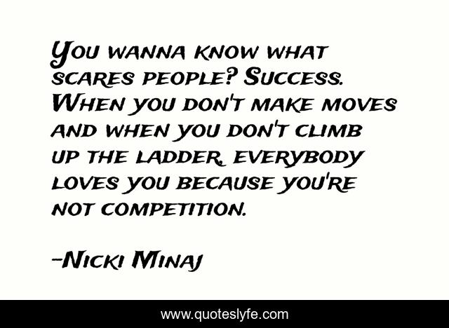 This page presents the quote "You wanna know what scares people? Success. When you don't make moves and when you don't climb up the ladder, everybody loves you because you're not competition.". Author of this quote is Nicki Minaj. This quote is about climb, competition, people,.
