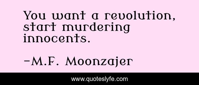 "M.F. Moonzajer Quotes." Quoteslyfe.com, 2025. Sat. 06 Dec. 2025. <https://www.quoteslyfe.com/quote/You-want-a-revolution-start-murdering-innocents-207052>.