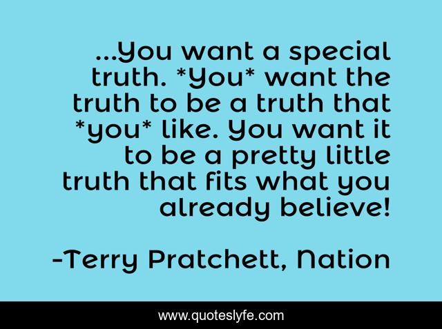 "Terry Pratchett, Nation Quotes." Quoteslyfe.com, 2025. Sat. 06 Dec. 2025. <https://www.quoteslyfe.com/quote/You-want-a-special-truth-You-want-230469>.