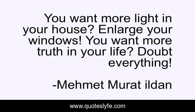 This page presents the quote "You want more light in your house? Enlarge your windows! You want more truth in your life? Doubt everything!". Author of this quote is Mehmet Murat ildan. .