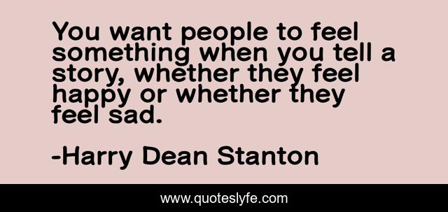 This page presents the quote "You want people to feel something when you tell a story, whether they feel happy or whether they feel sad.". Author of this quote is Harry Dean Stanton. This quote is about happy, people,.