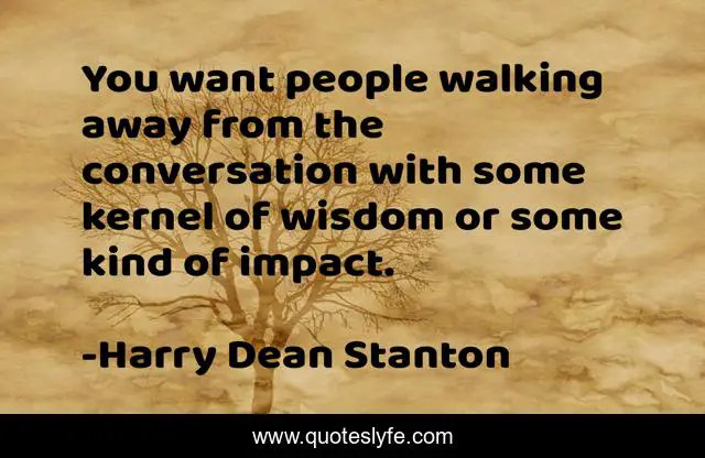 This page presents the quote "You want people walking away from the conversation with some kernel of wisdom or some kind of impact.". Author of this quote is Harry Dean Stanton. This quote is about walking, people,.