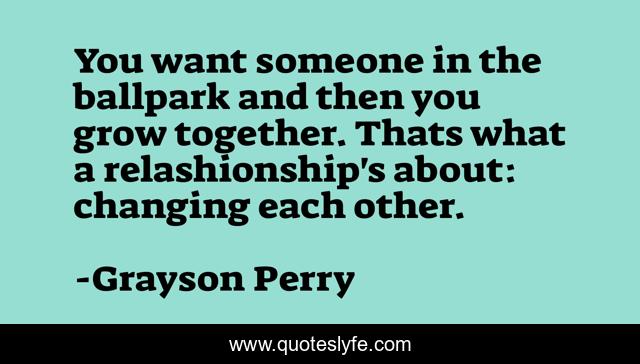 This page presents the quote "You want someone in the ballpark and then you grow together. Thats what a relashionship's about: changing each other.". Author of this quote is Grayson Perry. This quote is about love, relashionship, marriage, affection,.
