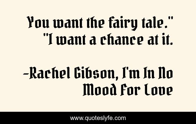 This page presents the quote "You want the fairy tale." "I want a chance at it.". Author of this quote is Rachel Gibson, I'm In No Mood For Love. This quote is about relationships, romance, love, affection,.