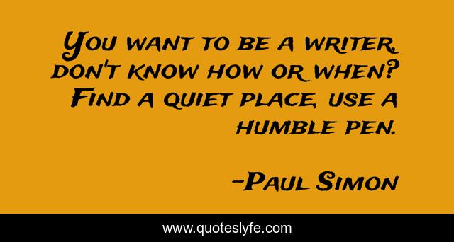 This page presents the quote "You want to be a writer, don't know how or when? Find a quiet place, use a humble pen.". Author of this quote is Paul Simon. This quote is about writer, pen, writers-on-writing,.