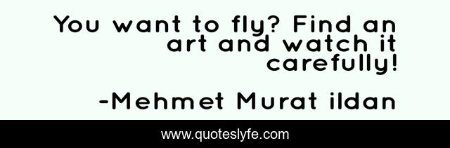 This page presents the quote "You want to fly? Find an art and watch it carefully!". Author of this quote is Mehmet Murat ildan. This quote is about art, mehmet-murat-ildan, ildan-wise-sayings, turkish, ildan-wisdom, turkish-playwrights, watch, turkish-wisdom-words, turkish-authors,.
