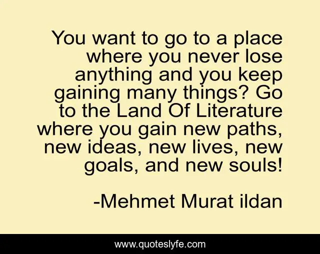 This page presents the quote "You want to go to a place where you never lose anything and you keep gaining many things? Go to the Land Of Literature where you gain new paths, new ideas, new lives, new goals, and new souls!". Author of this quote is Mehmet Murat ildan. This quote is about literature, murat-ildan,.