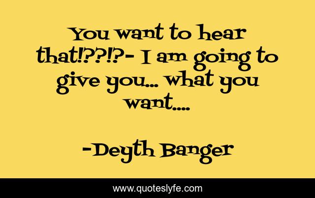 This page presents the quote "You want to hear that!??!?- I am going to give you... what you want....". Author of this quote is Deyth Banger. This quote is about hear, give,.