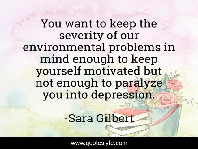 This page presents the quote "You want to keep the severity of our environmental problems in mind enough to keep yourself motivated but not enough to paralyze you into depression.". Author of this quote is Sara Gilbert. This quote is about mind, depression, yourself,.