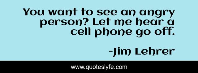 This page presents the quote "You want to see an angry person? Let me hear a cell phone go off.". Author of this quote is Jim Lehrer. This quote is about me, cell phone,.