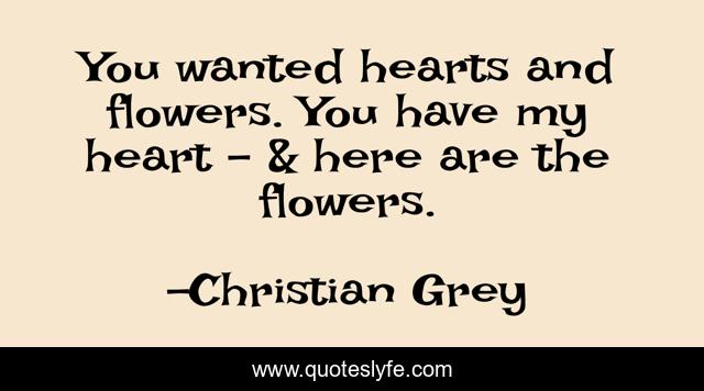 This page presents the quote "You wanted hearts and flowers. You have my heart - & here are the flowers.". Author of this quote is Christian Grey. This quote is about beautiful, el-james, sentimental, love, fifty-shades-of-grey, flowers, fifty-shades-darker, grey, romance,.