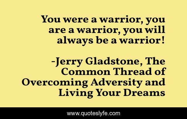 "Jerry Gladstone, The Common Thread of Overcoming Adversity and Living Your Dreams Quotes." Quoteslyfe.com, 2025. Fri. 05 Dec. 2025. <https://www.quoteslyfe.com/quote/You-were-a-warrior-you-are-a-83236>.
