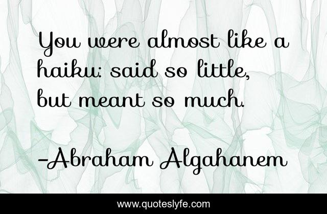 "Abraham Algahanem Quotes." Quoteslyfe.com, 2025. Tue. 09 Dec. 2025. <https://www.quoteslyfe.com/quote/You-were-almost-like-a-haiku-said-142373>.