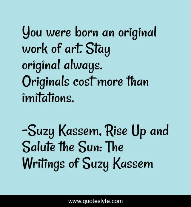 "Suzy Kassem, Rise Up and Salute the Sun: The Writings of Suzy Kassem Quotes." Quoteslyfe.com, 2025. Tue. 09 Dec. 2025. <https://www.quoteslyfe.com/quote/You-were-born-an-original-work-of-61572>.