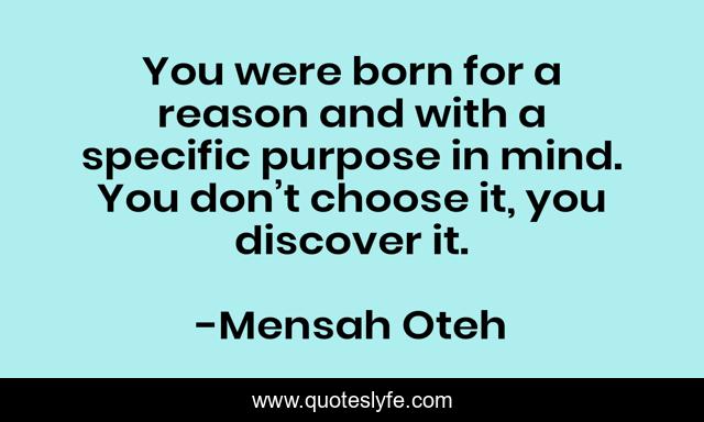 "Mensah Oteh Quotes." Quoteslyfe.com, 2025. Mon. 08 Dec. 2025. <https://www.quoteslyfe.com/quote/You-were-born-for-a-reason-and-49081>.