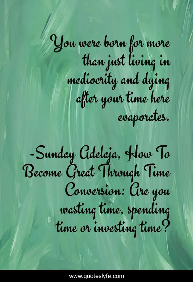 "Sunday Adelaja, How To Become Great Through Time Conversion: Are you wasting time, spending time or investing time? Quotes." Quoteslyfe.com, 2025. Mon. 08 Dec. 2025. <https://www.quoteslyfe.com/quote/You-were-born-for-more-than-just-39164>.