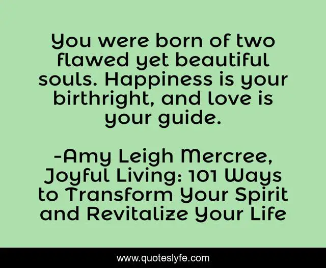 This page presents the quote "You were born of two flawed yet beautiful souls. Happiness is your birthright, and love is your guide.". Author of this quote is Amy Leigh Mercree, Joyful Living: 101 Ways to Transform Your Spirit and Revitalize Your Life. This quote is about quotes-about-happiness, life, quotes-de-la-vida, amy-leigh-mercree, family, quote-of-the-day, joyful-living, quotes-on-love, quotes-tumblr,.