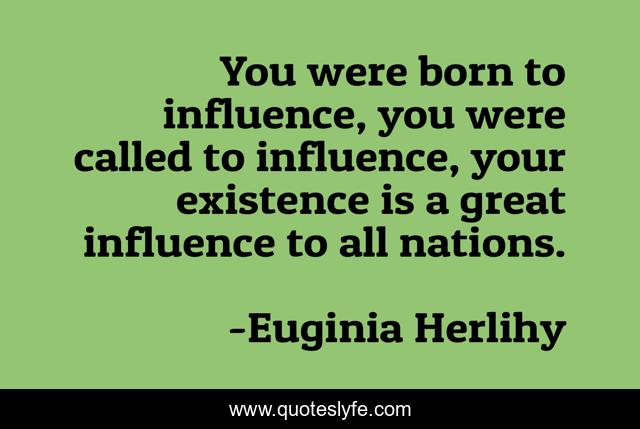 This page presents the quote "You were born to influence, you were called to influence, your existence is a great influence to all nations.". Author of this quote is Euginia Herlihy. .