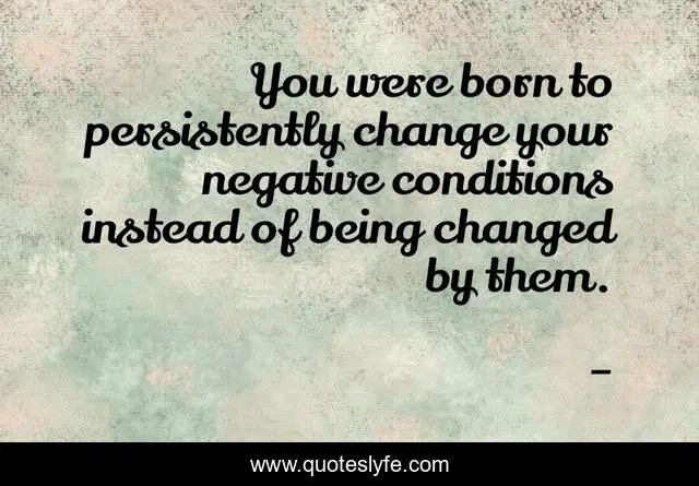 This page presents the quote "You were born to persistently change your negative conditions instead of being changed by them.". Author of this quote is . This quote is about don-t-let-things-change-you, edmond-mbiaka, change-your-life, condition, persistent, negative-conditions, persistently, make-a-chane, situation,.