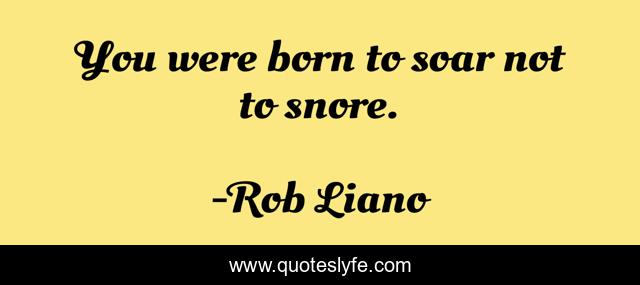 This page presents the quote "You were born to soar not to snore.". Author of this quote is Rob Liano. This quote is about action, purpose,.