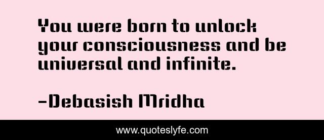 This page presents the quote "You were born to unlock your consciousness and be universal and infinite.". Author of this quote is Debasish Mridha. This quote is about consciousness, universal, philosophy, debasish-mridha, quotes, inspirational, infinite, enthusiasm, debasish-mridha-m-d,.