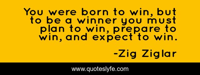 This page presents the quote "You were born to win, but to be a winner you must plan to win, prepare to win, and expect to win.". Author of this quote is Zig Ziglar. .