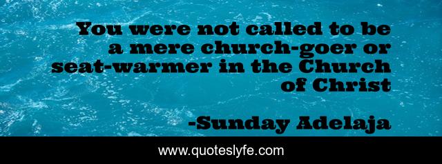 This page presents the quote "You were not called to be a mere church-goer or seat-warmer in the Church of Christ". Author of this quote is Sunday Adelaja. This quote is about life, calling, purpose, goals, fulfillment,.
