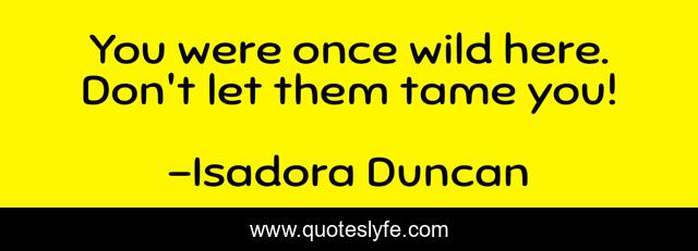 This page presents the quote "You were once wild here. Don't let them tame you!". Author of this quote is Isadora Duncan. This quote is about control, self,.