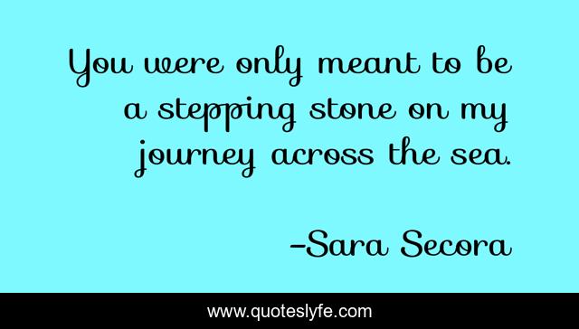 This page presents the quote "You were only meant to be a stepping stone on my journey across the sea.". Author of this quote is Sara Secora. This quote is about relationships, life, positive, motivational, confidence, breakups, optimistic, inspirational, enthusiasm,.
