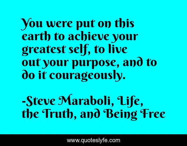 This page presents the quote "You were put on this earth to achieve your greatest self, to live out your purpose, and to do it courageously.". Author of this quote is Steve Maraboli, Life, the Truth, and Being Free. This quote is about life, success, fearless, motivational, confidence, self-empowerment, optimistic, inspirational, greatness,.